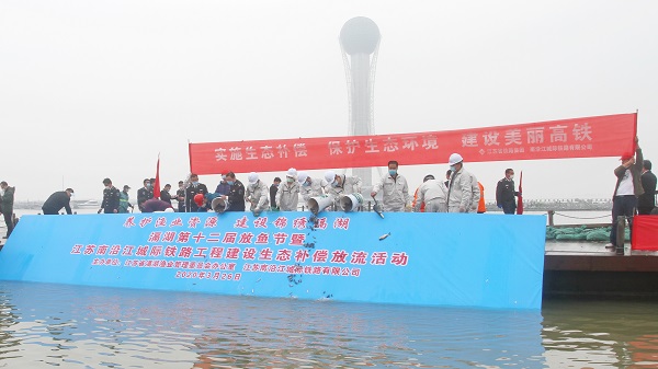 3月26日,省铁路集团南沿江公司与省滆湖渔业管理委员会办公室在滆湖开展了“江苏南沿江城际铁路工程建设生态补偿——滆湖渔业资源增殖放流活动”。