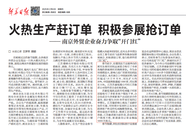 开年新气象,“出海”风正劲。新年伊始,苏豪控股集团旗下子公司苏豪泓瑞迅速吹响新春奋进的号角,于法兰克福纺织品展览会上斩获超百万美元订单,为外贸市场增长注入强劲动能,受到新华日报关注和报道。