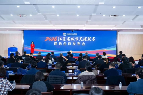1月27日下午,2026江苏省城市足球联赛(以下简称“联赛”)商务合作发布会在南京举行。江苏省体育局副局长刘彤,集团党委书记、董事长顾晔,党委副书记、总经理吴波,江苏银行党委委员、副行长高增银,苏豪控股集团党委副书记陈万宁以及各赛区代表、赞助商代表、新闻媒体代表等出席发布会。