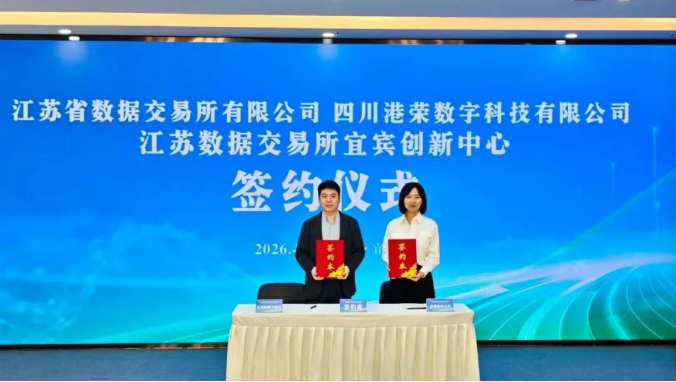 2026年4月16日,江苏省数据交易所有限公司(以下简称“江苏数交所”)与四川港荣数字科技有限公司在宜宾隆重举行“江苏数据交易所宜宾创新中心”揭牌仪式。这标志着江苏数交所全国首个跨区域数据流通交易创新平台正式投入运营,也是东西部数据要素市场协同发展的生动实践。