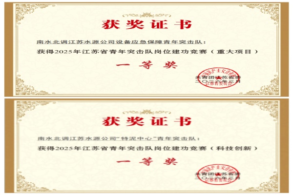 近日,由共青团江苏省委、省发改委、省科技厅主办的2025年度江苏省青年突击队岗位建功竞赛表彰结果正式揭晓,南水北调江苏水源公司2支青年突击队分别荣获重大项目类一等奖、科技创新类一等奖,以实干攻坚诠释青春担当,以创新突破筑牢水网根基,为公司高质量发展注入强劲青春动能,彰显了江苏水源青年在服务国家重大战略的生力军作用。