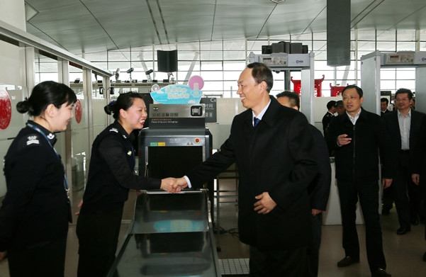 1月24日,副省长马秋林一行在省政府副秘书长王志忠,机场公司董事长钱凯法、总经理张有富总的陪同下,来到禄口机场检查指导,并向坚守在工作一线的人员送上新春的祝福。