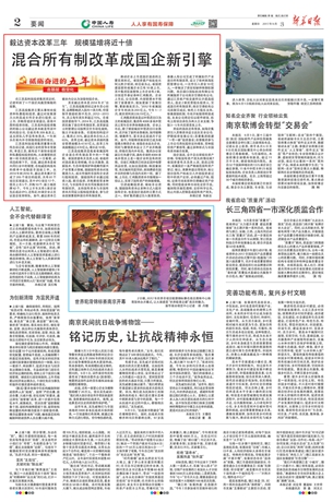 9月3日,《新华日报》二版重要位置刊登了《混合所有制改革成国企新引擎》一文,介绍了省属企业混合所有制改革的相关情况。全文刊发如下: