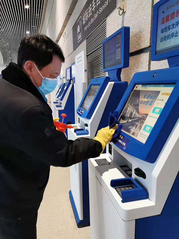 自实施体温检测工作以来 ,燕守庆夜以继日地工作在战“疫”最前沿。他制定本科室《环境卫生行动办法》,给大家讲解新型冠状病毒的传播特点和防控措施。身为党员,每天对中心客运站内人流密集区域进行通风、清洁、全区域消毒4次,累了困了就地在办公桌上打个盹。老燕的爱人王书静,连日来一直坚守在国际到达体温检测点,负责旅客体温测量,吃住都在机场。夫妻俩虽然同在一个机场,忙起来最长两三天见不上面,只能通过手机互相叮嘱做好防护工作。