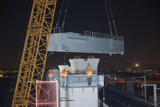 “此次吊装顺利完成为后续铺架工作奠定了基础。”南沿江公司有关负责人表示,为确保钢横梁梁吊装工作安全有序进行,项目部提前策划部署,邀请业内外专家论证方案的可行性,不断优化改进施工方案,吊装过程现场盯控,确保了13天的封锁施工万无一失。