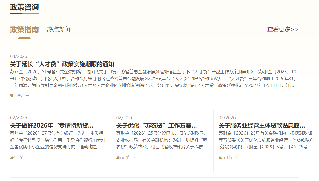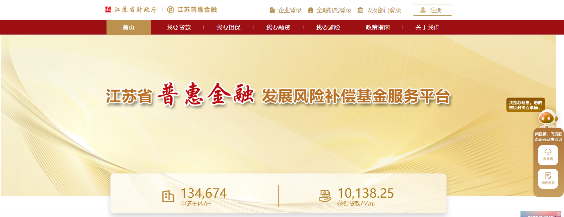 在数字化浪潮与金融服务深度交融的当下,江苏省普惠金融发展风险补偿基金服务平台(以下简称“平台”)近日迎来门户网站的全新改版升级。以“更直观、更智慧、更温暖”为核心理念,新版门户不仅重塑了视觉交互体验,更从功能布局上精准对接中小微企业及各类经营主体的融资需求,让普惠金融的政策红利“一键可及”。