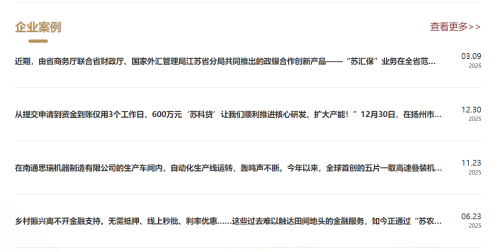 政策好不好,企业最有发言权。新增的“企业案例”栏,精选了一批获得政策产品扶持的鲜活样本。从初创科技型企业借助“苏科贷”突破资金瓶颈,到农业加工企业通过融资担保扩大生产规模,再到外贸企业运用汇率避险工具稳健经营……一个个真实故事,生动展现了普惠金融如何为各类主体“输血”“赋能”,也为具有类似需求的其他经营主体提供了可借鉴、可复制的路径参考。